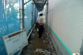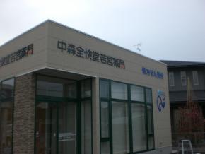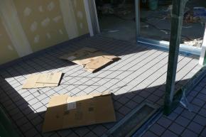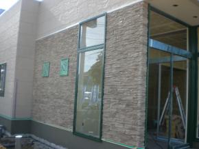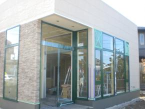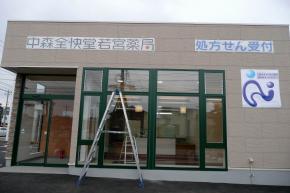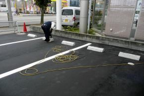 外壁サインの取付位置及び大きさを実物大の紙で確認して頂きました。