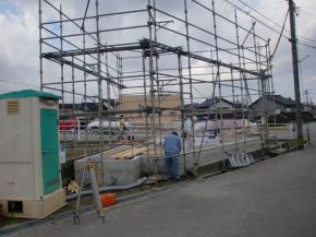 明日からの建て方に備え、外部足場を組立し、