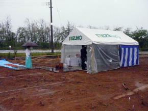 地鎮祭を執り行う前の全景です。実際の建物の大きさを示す地縄が張ってあります。