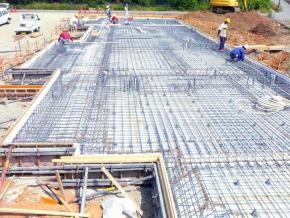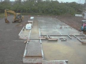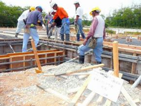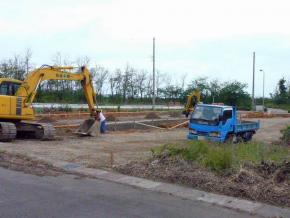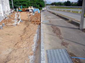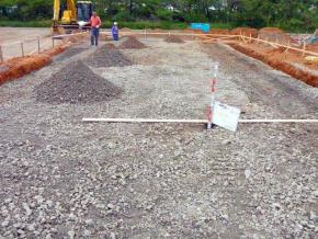 建物の基礎の下、捨てコンクリート打設用採石、敷き均し状況です。