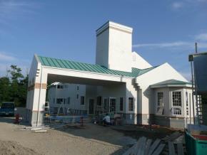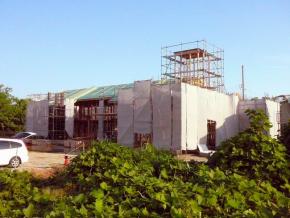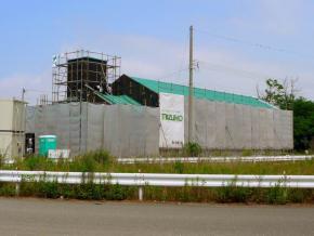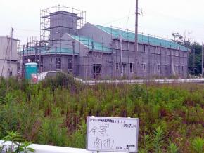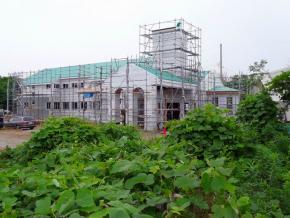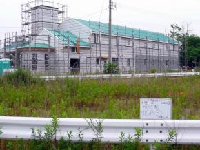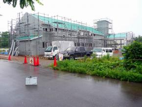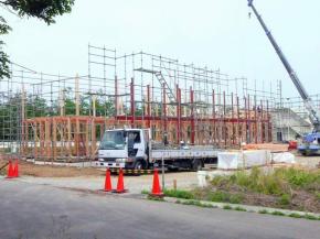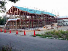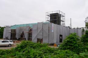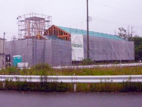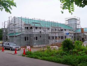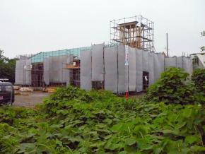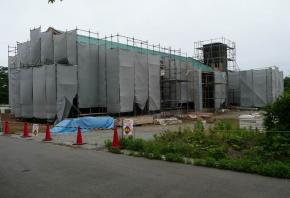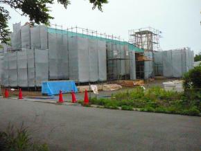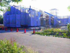 北西部からの外観の様子です。メッシュシートをめくり、建物の姿を現しました。