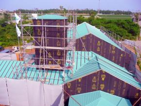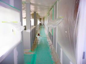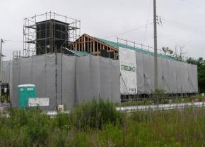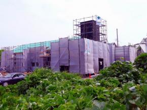全景写真2(こちら側は、グレーのメッシュシートで建物全体を囲みました。)