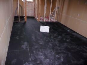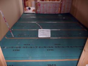 2階床下の遮音マット敷き込みをし、防水紙を張りました。