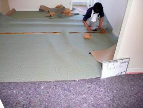 2階床の遮音マット敷き込みの後に、防水紙を張りました。