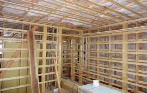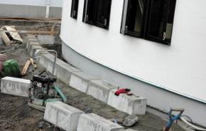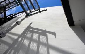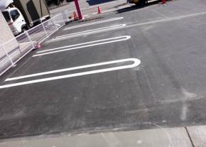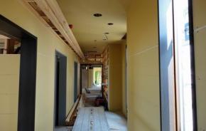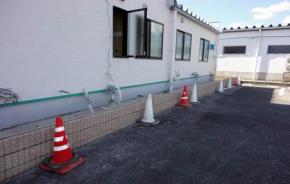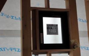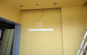 風除室の壁面サインを実物大の紙で確認して頂きました。
